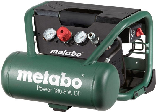 Переносной монтажный безмасляный поршневой компрессор Metabo Power 180-5 W OF (Метабо Пауэр 180-5 В ОФ) – компактное оборудование с широким спектром применения, отлично подходит для забивания скоб и гвоздей, а также для испытаний давлением трубопроводов как опрессовщик.