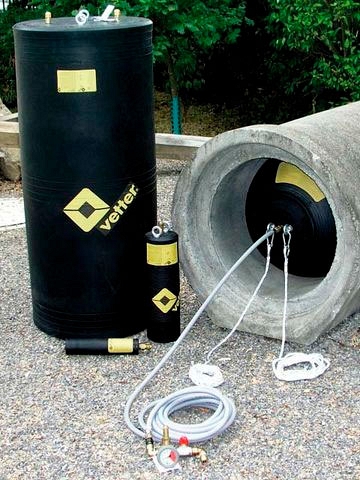 Маслостойкая химостойкая цилиндрическая пневмозаглушка для труб Vetter RDK 30/60 CR (Веттер РДК 30/60 ЦР) – многоразмерная пневматическая заглушка для перекрытия трубопроводов Ø 300 – 600 мм (12" – 24") в тех случаях, когда необходима повышенная устойчивость, например, против масел и топливных материалов на нефтеперегонных заводах в нефтепроводах или трубах, предполагающих контакт с маслом и консистентной смазкой.