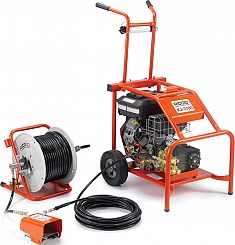 - Освобождает оператору обе руки, позволяя направлять промывочный шланг для размыва в устье сточной трубы и в изгибах и сифонах