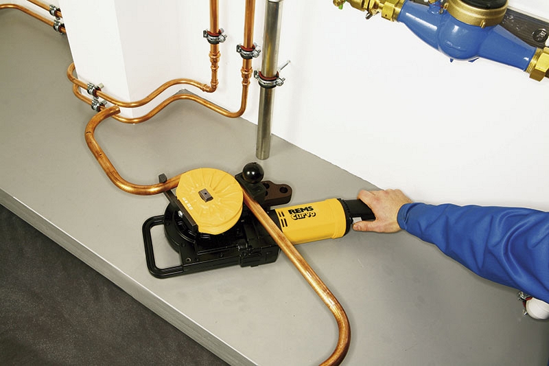 Rems Курво – качественная гибка труб. Универсально для многих видов труб. В санитарных, отопительных системах, системах климат-контроля, холодильной техники и гидравлики. Также для тонкостенных отопительных труб и труб панельного отопления из меди согласно германскому промышленному стандарту EN 1057 и для труб пресс-фитинговых систем. Без предварительных настроек, сразу готов к работе. Быстрая и медленная подача для точной гибки. Быстрая смена насадок. - Системное преимущество:
